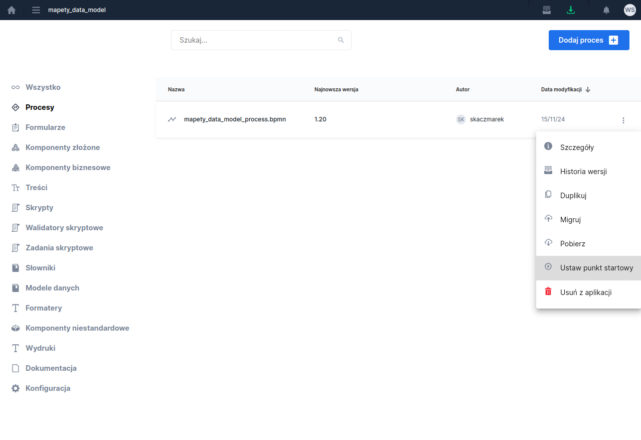 Ustawienie procesu jako punkt startowy i uruchomienie aplikacji