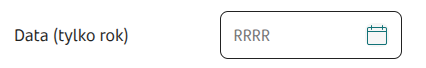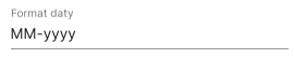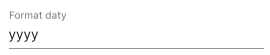 Dopuszczalne formaty są takie same jak w polu z Formatem daty. Jeśli pole jest niewypełnione, to Format daty dla pola bez focusa jest taki sam jak na polu z Formatem daty. Jeśli pole jest wypełnione innym formatem niż Format daty, wówczas ta wartość będzie widoczna po wyjściu z pola, a Format daty po kliknięciu w pole.
