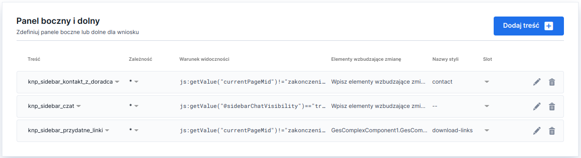 Ilustracja 1. "Treści" (text contenty) dodane do tzw. sidebara