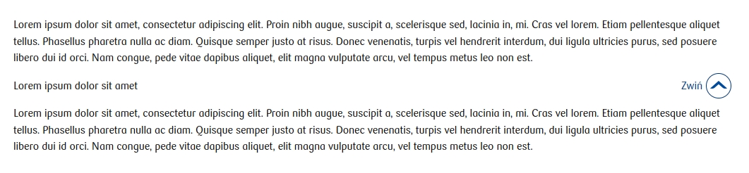 Poniżej przykładowy wygląd na wniosku z zastosowaniem w Treści znacznika zwiń/rozwiń: