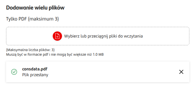 Dostępność funkcjonalności zależy od licencji i może nie być dostępna we wszystkich wdrożeniach. Tekst wyświetlany na przycisku dodawania pliku.