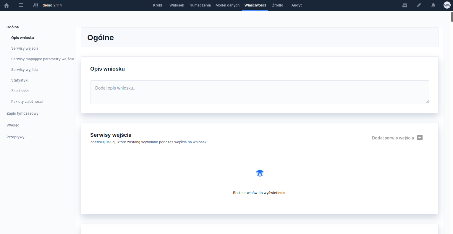 Wniosek demo: demoWlasciwosciSzablonuWniosku