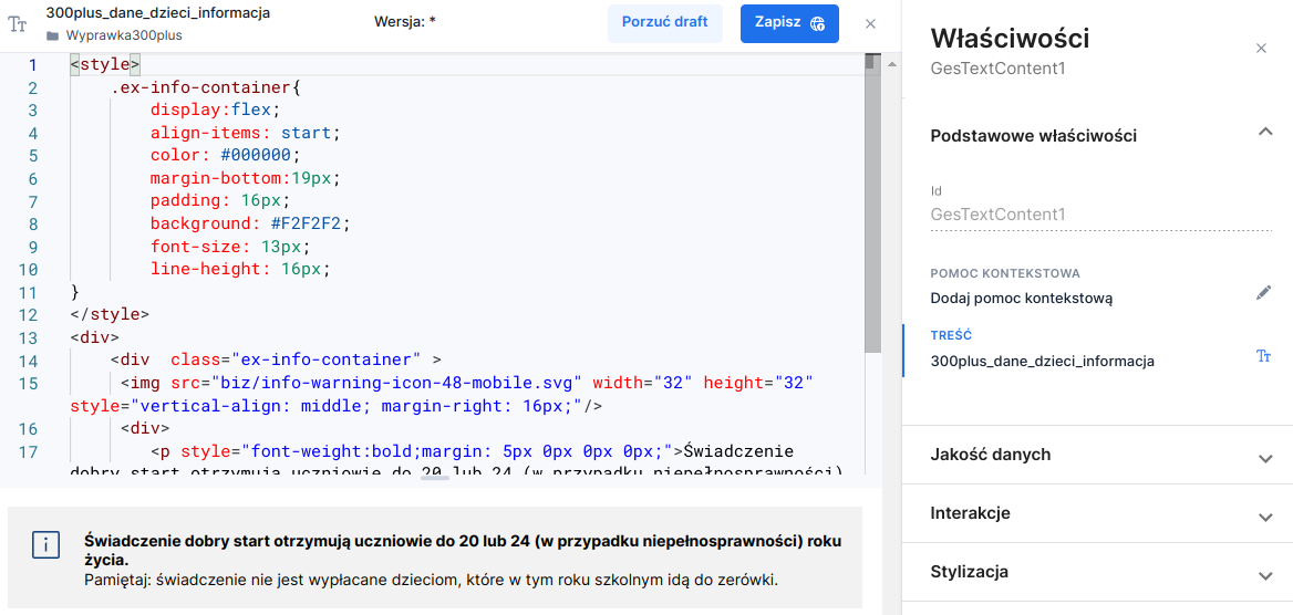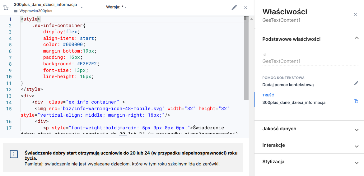 Illustration 2. Formatted content edit panel - preview mode from the application level