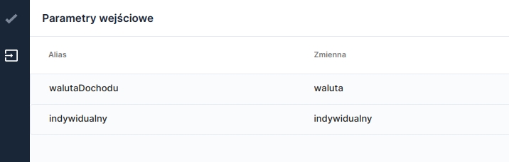 , we can specify input data for the dictionary. The column Variable means the name of the variable that we will be able to use in JavaScript expressions when defining conditions, and Alias means the variable name visible when attaching the dictionary as a data source.