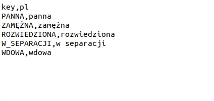 pl — the values in Polish for the given key (if other languages are configured, they will appear as additional columns).