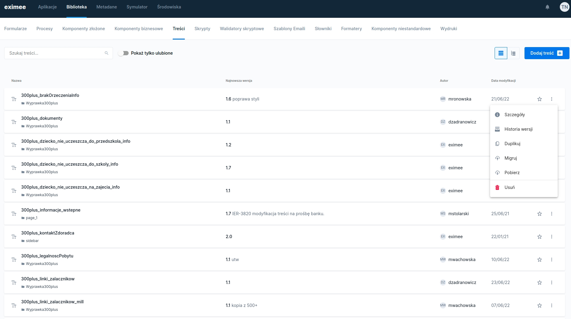 To create a new one or edit an existing one, go to the module Library and select the tab Content. A list of artifacts of that type will be presented. From this view you can create new content, review the save history, or edit an existing content artifact.