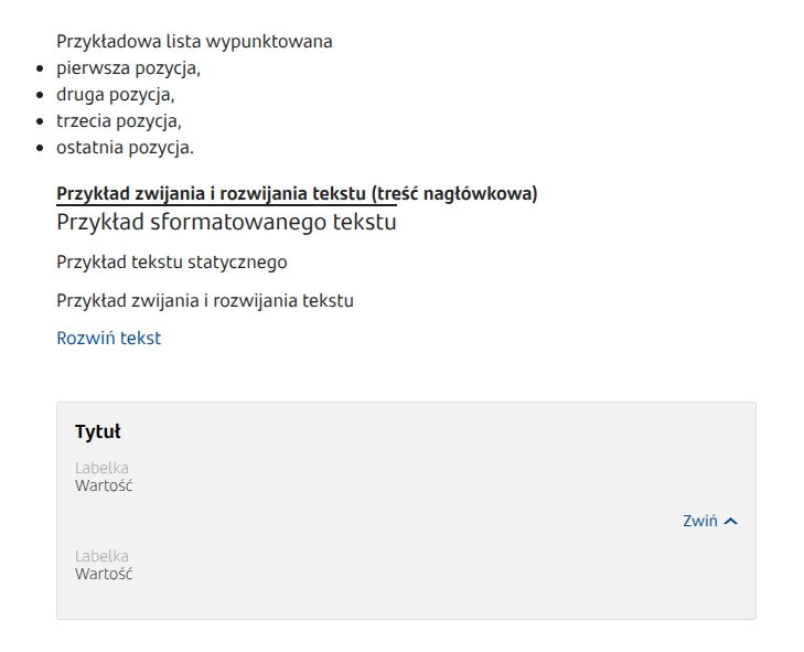 A component used to display static content with HTML formatting on forms. The component is fed with content prepared in the artifact Content.