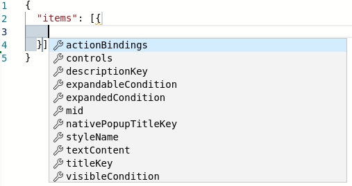 The statements editor supports syntax suggestion functionality. After pressing the key combination Ctrl + Space a suggestion containing possible fields to enter is displayed depending on the current cursor position in the editor. Selecting one of them and pressing the Enter key inserts the selected suggestion into the editor.
