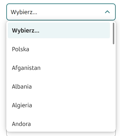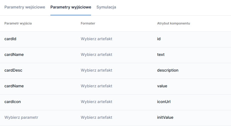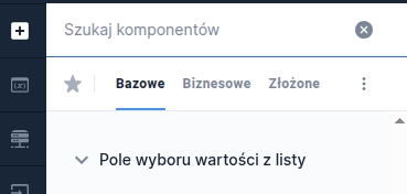 The value picker from a list is a component that requires being fed by a data source. To do this, in the component panel you need to go to the Properties section of the component Interactions and select External data source. Then in the visible window click Select service and search the list for the appropriate dictionary, service or script. Each of these items is marked with a different icon in the list. After selecting the appropriate data source, its name and type information appear in the External data source section: