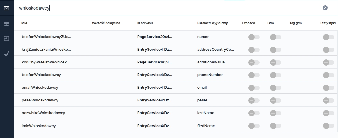 the ability to sort the session variables table by every available column (Mid, Default value, Service id, Output parameter, Exposed, Gtm, GTM tag, Statistics),