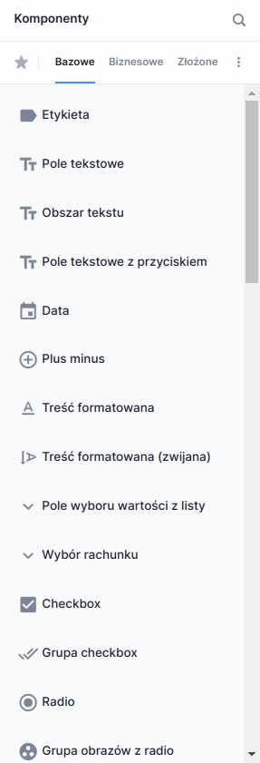 A new component can be added in edit mode using the component palette located on the left. To do this, drag the selected component from the palette and drop it in the appropriate place on the form.